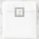 Das elegante graue Spitzenteppich und der quadratische Aufkleber mit einem goldbeigen Vogel für eine klassische Geburtstagsparty, für schicke Feiern und für schöne Briefe.
