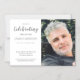 Laden Sie Freunde und Familie ein, ihre Lieblingsgeschichten und Erinnerungen mit dieser eleganten Feier des Lebens zu teilen. Dieses Design enthält ein Foto des gefeierten, sowie graue Skript- und Blockschrift-Schriftart.