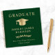 Elegantes Gästebuch für grüne Absolventen mit goldener Graduiertenkappe, Graduate und dem Namen, der Schule und dem Klassenjahr des Absolventen in klassischer Serifentypografie.