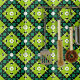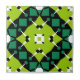 Moderne, lebendige Keramik Fliesen mit einem nahtlosen Muster aus geometrischen Formen in Kalkgrün, Smaragdgrün, Schwarz und Weiß.