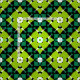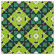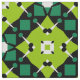 Modernes, lebendiges Stoffdesign mit einem nahtlosen Muster aus geometrischen Formen in Kalkgrün, Smaragdgrün, Schwarz und Weiß.
