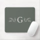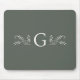 Mit diesem individuell anpassbaren Mousepad mit eleganten botanischen Schnörkeln und einem zentrierten Monogramm erweitern Sie Ihren Schreibtisch. Das moderne, grün inspiriert Design verbindet Eleganz mit Alltagsfunktionen und ist damit das perfekte Zubehör für Ihr Büro oder Ihren Zuhause-Arbeitsplatz. Personalisieren Sie mit Ihrer Initialen, um ein wohlüberlegtes Urlaubsgeschenk, ein Lehrergeschenk oder einen stilvollen Schreibtischakzent zu kreieren. Entworfen von Redwood & Vine Design Co.