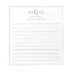 Bleibe gepflegt und organisiert mit diesem individuell gestaltbaren Notizblock, der mit eleganten grünen botanischen Schnörkeln und moderner Typografie besticht. Die Seiten in den Reihen bieten eine Struktur für Listen, Erinnerungen und Notizen, während der personalisierte Name und das Monogramm am oberen Rand es einzigartig machen. Dieses Design von Redwood & Vine Design Co. ist ein perfektes Accessoire für Zuhause oder Büro und macht auch einen wohlüberlegten Urlaub oder ein Lehrergeschenk.