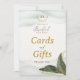 Elegante Greenery Gold Watercolor Brautparty 12x18" Karten & Geschenksign. Dieses atemberaubende 12x18"-Schild ist der ideale Weg, um Ihre Gäste zum Kartentisch und zum Geschenktisch zu führen und gleichzeitig eine schöne, persönliche Touch zu Ihrem Dekor hinzuzufügen. Das zweiseitige Design ist perfekt in Kartenständer oder Cliphalterungen (nicht im Lieferumfang enthalten) integriert und verfügt über ein Spiegelbild auf der Rückseite. Dies garantiert eine einwandfreie Anzeige aus allen Blickwinkeln, die es zu einem wirklich kompletten und eleganten Stück macht. Das Schild ist schön personalisiert mit einem letzten Countdown bis zum großen Tag in einem einzigartigen Stil. Im Folgenden wird der Name der Braut aufgeführt, gefolgt von "Brautparty" in eleganter Typografie. Die Worte "Karten & Geschenke" werden in einem fett geschriebenen Skript für eine Touch des Flairs platziert, und ein herzliches "DANK YOU" wird hinzugefügt, um Dankbarkeit für Ihre Lieben zu zeigen. All dies ist Set gegen die atemberaubende Aquarell und Gold-Design der Sammlung. Dieses schicke Schild dient sowohl als wunderschönes Dekor als auch als übersichtlicher, funktionaler Leitfaden, der Ihnen garantiert, dass jedes Detail Ihres Festes elegant und mühelos ist.