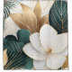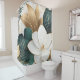 Große, weiße Blume mit goldenen Akzenten verbinden sich mit grünem und goldgelbem Blattwerk und schaffen ein schönes und elegantes Design an diesem Duschvorhang.
