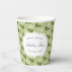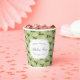 Diese personalisierten Papiertassen sind ein charmantes, individuelles Detail für jede Feier. Sie haben drei Textzeilen und ein Hintergrundmuster aus blass-grünen und weißen Hydrangea-Blume, um den Getränketisch jeder Brautdusche oder Babydusche zu kleiden.