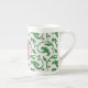 Elegantes gürtelgrünes Blumenmuster Monogramm Prozellantasse