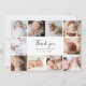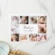 Eine wunderschöne, moderne und elegante quadratische Foto-Collage-Karte, die perfekt geeignet ist, um Ihren Babyduschgästen für Geschenke, Liebe und Unterstützung danken zu können. Das moderne Design besticht durch eine Collage aus 10 quadratischen, individuell anpassbaren Fotos. In der Mitte gibt es eine Danksagung in einem handgeschriebenen, schicken Schriftsatz und Ihrem Babynamen und Geburtsdatum, in eleganter klassischer Schrift. Auf der Rückseite ist Ihre individualisierbare Danksagung im klassischen Schriftart. Über den "Personalisierung"-Button können Sie die Fotos ersetzen und den Text ändern.