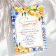 Feiern Sie die Braut mit einer stilvollen Braudusche im zitruskischen Stil, die Eleganz und Charme verbindet. Das Design zeichnet sich durch Aquarellbilder von Orangen, Clementinen, Zitronen und grünen Blätter aus, die einen zauberhaften Kachelhintergrund für ein mediterranes Ambiente im Sommer bilden. Verwenden Sie die Entwurfstools, um Text, Schriftart und Farbe anzupassen. Auch als Download verfügbar.