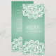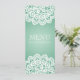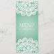 Eleganter Hochzeit "Menü" Entwurf mit romantischem Vintagem grünem und kundenspezifischem Text der Spitze-Minze. Beeindrucken Sie Ihre Familie und Freunde mit diesem stilvollen und modernen Entwurf. Völlig kundengerecht! Bedienungsfreundlich und einfach zu personifizieren. Auftrag heute!