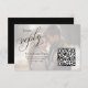 Diese moderne Hochzeitskarte verbindet schlichte Eleganz mit durchdachter Funktionalität. Es ist in Schwarz und Weiß gehalten und verfügt über ein raffiniertes Kalligraphieskript, eine saubere Typografie und eine stilvolle Fotovorlage für eine persönliche Touch. Ein eingebauter QR-Code für Ihre Hochzeitswebsite ermöglicht es Ihnen, schnell und einfach UAWG zu machen. Ideal für Paare, die eine moderne, elegante Hochzeitskarte suchen, die zeitloses Design mit zeitgenössischem Komfort verbindet.