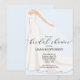 Eine Braut in ihrem Hochzeitskleid und Schleier mit Ihren Details in schicker Schrift auf einem hellblauen Hintergrund oder einer beliebigen Farbe Ihrer Wahl, diese Einladungen sind perfekt für Einladungen zum Brautbad. PASSENDE Artikel in unserer Kollektion.