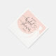 Eine elegante Brautparty-Papierserviette mit einem eleganten Hochzeitskleid, einem wunderschönen Schriftzeichen und all Ihren besonderen Brautparty-Details ganz personalisiert auf einem rot-rosa Hintergrund. Entwickelt von Thisisnotme©