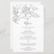 Elegantes Line Art Wedding Menu mit einem einfachen Bleistift Skizze einer magnolischen Blume in einem mittelgrauen über einem weißen Hintergrund. Diese hübschen Blumenmenüs sind auf Papier gedruckt, um eine preisgünstige Option zu erhalten und eignen sich hervorragend für eine Hochzeitsfeier im Frühjahr oder Sommer.