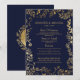 Elegantes Hochzeitsmenü der Navy und Gold Floral Menükarte