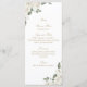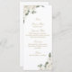 Elegantes Hochzeitsmenü mit weißem Rosenbukett. Menú editable con flor blanca