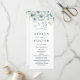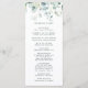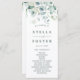Dieses Zeremoniell-Programm beinhaltet einen Aquarell Eukalyptus, botanisches Grün und hellblaue Blätter mit moderner Kalligraphie.