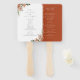 Eleganter Watercolor Herbst Botanische Flora, Hochzeitsprogramm Hand Fan. Schwarz-Weiß-Typografie mit der Koordination von Weiß- und Terracotta-Orange-Hintergrundfarben.