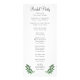 Dieses elegante, grün-weiße Hochzeitsprogramm eignet sich ideal für eine Hochzeit im Garten oder eine Hochzeit im Freien. Das Design ist mit weißer Typografie, einfachem Text und handgemalten Aquarellen auf der Vorder- und Rückseite gestaltet. Der Text ist leicht mit allen Details für den besonderen Tag personalisiert.