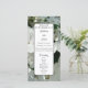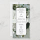 Das ist ein elegantes Blume Blumen Hochzeitsprogramm mit weißen Hydrangea-Blume Foto-Design auf einem waldgrünen Hintergrund. Es ist ideal für einen Sommer- oder Herbst-Hochzeitsfest im Garten.