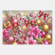 Fügen Sie Ihren Urlaubsgeschenke eine Touch Eleganz und Fröhlichkeit mit diesem lebendigen Weihnachtspapier hinzu. Dieses Design mit einer reizvollen Mischung aus rosa Poinsettien, goldenen Ornamenten, Bonbons und glänzenden Bögen strahlt Freude und Glanz aus. Ideal, um Ihre Geschenke unter dem Baum zu präsentieren.