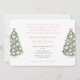 Dieses Baby Girl Dusche Einladung Design bietet Aquarellen Weihnachtsbäume mit rosa und weißen "Ingwerjar" Baubles sowie weiße Poinsettia und rosa Bögen. Wasserfarbene Elemente, die ursprünglich von mir handgemalt wurden. Die Rückseite ist mit einem rosa und grünen Tartan kariert.