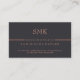 Elegante Visitenkarte in einem minimalen Holzkohle- und Rose-Golddesign mit einem großen Monogramm und sauberen Linien.