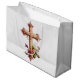Elegantes Holzkreuz mit rosa Blume Große Geschenktüte