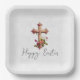 Elegantes Holzkreuz mit rosa Blume Ostern Pappteller