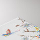 Eine elegante, aber fantasievolle Kombination orientalischer Motive, inspiriert durch die antiken asiatischen Chinoiserie Töpferwaren und Seidendesigns, schafft eine wunderschöne, skurrile und farbenfrohe Gartenlandschaft. Ein bunter Pfau, Vögel und Schmetterlinge spielen zwischen Bambuslattippen und blühenden Pflanze vor grauem Hintergrund. Handgemalte Aquarellkunst und Design von Tuzi Williams.