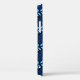Blue Pflanze iPhone Gehäuse mit botanischem Muster aus einer hübschen Vektor-Abbildung eines Blumenmotivs einer Pflanze mit blauen Blätter und weißen Webbing auf ihnen schön angeordnet über leicht durchsichtige Muster der gleichen Kachel über dunkelblauem Hintergrund.