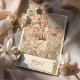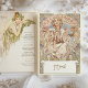 Dieses wunderschöne Dinner-Menü zeigt ein exquisites Jugendstil-Design mit Illustrationen, die an Alphonse Muchas ikonischen Stil erinnern. Die Vorderseite des Menüs hebt eine ruhige Frau hervor, umgeben von faszinierenden Mustern und Blumenmotiven in sanften, erdigen Tönen von Sahne, gedämpftem Gold, Salbei-Grün und zarten Pastellfarben. Die Vintage Eleganz der Illustration erinnert an eine zeitlose Schönheit, die sich perfekt für eine klassische oder kunstlich inspiriert Hochzeit eignet. Auf der Rückseite des Hotels befindet sich ein hübsches Bild einer gläsernen Frau, die eine feierliche Touch mit einem detaillierten Abendmenü in einem eleganten Schriftart bietet. Ideal für Paare, die eine künstlerische und Vintage Ästhetik für ihren besonderen Tag suchen.
