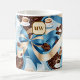 Diese Kaffee-Tasse zeichnet sich durch ein stilvolles und lebendiges Design aus, das kaffee-inspirierte Elemente mit einer raffinierten Ästhetik verbindet. Das Kunstwerk besteht aus dampfenden Kaffeetassen, Kaffeebohnen und vielen Details wie Latte Art. Diese Motive sind Set in sanften Blau- und Goldtönen und verleihen dem Design einen frischen und eleganten Look. Ein großes, dekoratives blaues Band mit goldenen Akzenten umhüllt das Design und fügt eine luxuriöse Touch hinzu. Das Kernstück ist ein in Gold gerahmtes Monogramm, das mit Initialen versehen werden kann, was diese Tasse zu einem idealen personalisierten Geschenk für Kaffeeliebhaber macht.