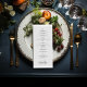Elegante Kalligraphie Doppelseitige Hochzeitskarte Erleben Sie Ihr Abendessen mit unserem exquisiten zweiseitigen Hochzeitsmenü, einem Meisterwerk der Eleganz und des Geschmacks. Die Vorderseite, mit bezaubernder Kalligrafie geschmückt, führt zu einer kulinarischen Reise, die die Eleganz des besonderen Tages des Paares widerspiegelt. Die elegante Typografie, ein Tanz mit Tinte auf Papier, flüstert Versprechungen einer gastronomischen Feier. Editieren Sie einfach den Text, einfach und schnell!