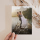 Moderne, elegante Hochzeit dank Fotokarte mit moderner, weißer Kalligraphie. Kundenspezifische Nachricht dank Kartendesign.