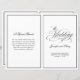 Erstellen Sie ein individuelles Hochzeitsprogramm mit diesem Template-Design, das einen schönen Kalligraphieskripttext enthält, der die Vorderseite des Programms mit einer speziellen Textvorlage hervorhebt, um mit Ihren detaillierten Informationen personalisieren zu können. Bitte beachten Sie, dass dieser Artikel auf Flachpapier gedruckt ist, das Sie falten müssen. Sie können Textzeilen hinzufügen oder entfernen, wenn dies für den gewünschten Text erforderlich ist. Bearbeiten Sie die Textvorlage mit Ihren Daten, und wählen Sie dann "weiter anpassen", um den Text nach Bedarf zu verschieben oder weitere Änderungen vorzunehmen.