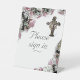 Das Design zeichnet sich durch die eleganten und realistischen Bilder von weichen rosa Rosen und weißen Hydrangeas aus, die die Kanten zieren. Das Bild eines silbernen Crucifixes wird in der rechten oberen Ecke angezeigt. Ihr Text wird in einem schönen silberfarbenen Schriftart in der Mitte dargestellt. Sehr elegant. Konzipiert, um sich mit der "Elegant Catholic Brautparty Collection" abzustimmen.
