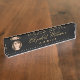 Eleganter Schreibtisch Namenschild mit Ihrem benutzerdefinierten Foto in einem Kreis auf einer links Seite und mit Imitaten goldenen Skriptnamen und Schriftart mit Nachnamen. Bitte beachten Sie, dass die goldene Textfarbe ein gelber Farbdruck ist und keine eigentliche Folie oder Metall ist. Unter dem Namen ist ein Platz für Ihren Titel. Ersetzen Sie das Vorlagenbild durch Ihr eigenes. Der schwarze Hintergrund macht diese Namensplatte elegant und beruflich aussehend. Für weitere Farboptionen wenden Sie sich bitte an den Designer. *Foto-Gutschrift: ©Tom Merton