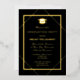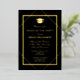 Klassische Luxus-Graduierungsparty in Schwarz und Gold mit einer echten Goldfolie-Typografie, Kalligraphie-Skript, geometrischem Rahmen und Gradhut.