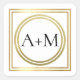 Imitate mit goldenen Quadrat- und Kreisrahmen, mit einigen Anfangsbuchstaben in einem schlichten und eleganten Schriftart-Stil, für eine klassische Gastgeschenke Hochzeit und Verpackung