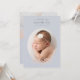 Diese wunderschön einfache und elegante Geburtsankündigung hat ein ovales Single-Foto vorne mit klassischen Typografiedetails für den Babynamen und die Statistik inklusive Geburtsdatum, Gewicht und Länge. Weiche pastellfarbene Blütendetails in einer rot-rosa Korallenpastellfarben und sanften, periwinkelblauen Punkten. Auf der Rückseite befindet sich ein Platz für optionale personalisierte Familiennachrichten und ein großes rechteckiges zweites Foto.