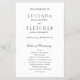 Elegantes Schwarz-Weiß-Hochzeitsprogramm (auf dünnem Flyer gedruckt) mit einem schlichten und minimalen Design mit den Namen der Braut und Bräutigam in einem klassischen Serif-Schriftart und der Mitte- und Nachnamen in einem eleganten Kalligraphieskript. Ein klassischer Stil, der perfekt für eine formelle Hochzeit ist.