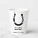 Elegantes klassisches Schwarz-weißes Pferderennen Derby Party Papiertassen Horseshoe Illustration kann so verändert werden, dass dieses Design auch für andere Reitveranstaltungen genutzt werden kann. Verwenden Sie das Entwurfstool, um die Bild- und Textelemente zu skalieren oder den Schriftart zu ändern.