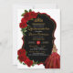 Elegantes Kleid Quinceanera Rote Rosen Schwarz und Einladung
