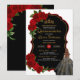 Elegantes Kleid Quinceanera Rote Rosen Schwarz und Einladung