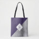 Elegante personalisierte Monogramm-Totentasche mit Volldruck in lila/violett und silber-metallic.
