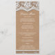 Elegantes Lace & Rustic Craft Paper Slim Dinner Me Menükarte