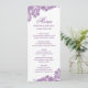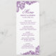 Elegantes Lavender Lila Spitzen-Muster Hochzeitsme Menükarte