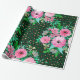Elegantes Leopard Print Pink Blumengrün Design Geschenkpapier