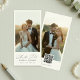 Teilen Sie Ihre Liebesgeschichte mit diesem eleganten Lesezeichen-Save-the-Date. Das saubere Design enthält zwei Lieblingsfotos, romantische Schrift und einen praktischen QR-Code, damit Ihre Gäste Ihre Hochzeitsdetails leicht finden können. Einfach, herzlich und zeitlos - eine schöne Art, den Menschen, die Sie lieben, zu sagen, dass Ihr Für-immer-bald beginnt.
